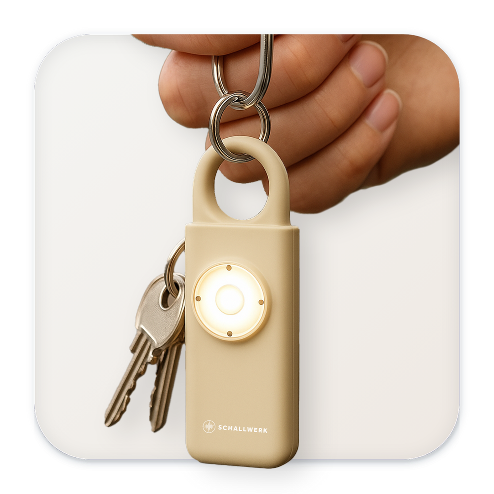 The Safety+ emergency alarm is your discreet companion for on the go. Despite its unobtrusive design, it offers powerful security: With just one touch, you activate the extra-loud 130 dB alarm and the bright strobe light. This deters attackers and immediately draws attention to you. Thanks to its sophisticated design, the Safety+ fits perfectly on your keychain, remains unobtrusive in everyday life, and gives you exactly what matters in an emergency.