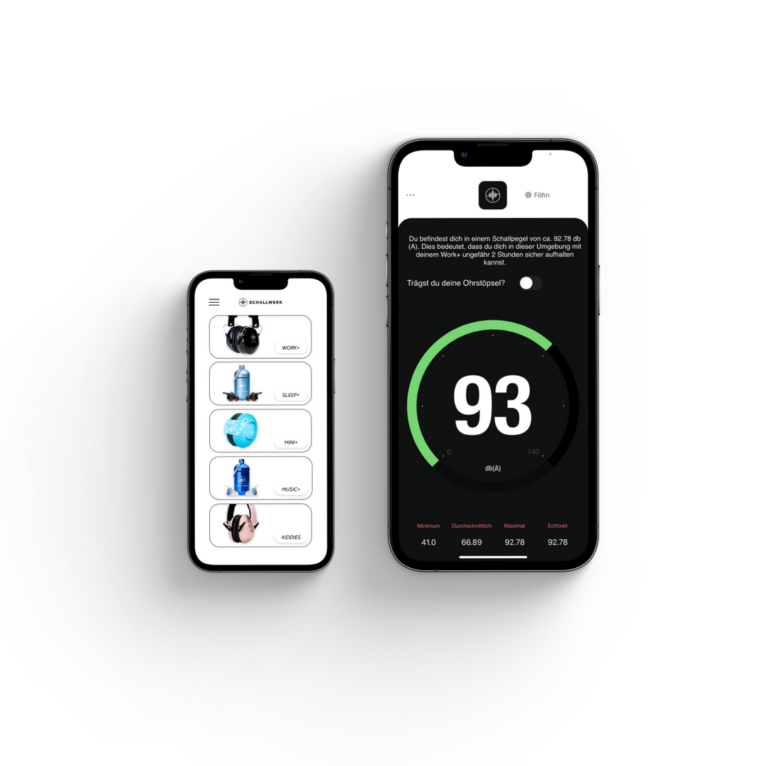 The SCHALLWERK app helps you determine how long you can stay in your current noise environment without damaging your hearing. Install and use our dB meter!